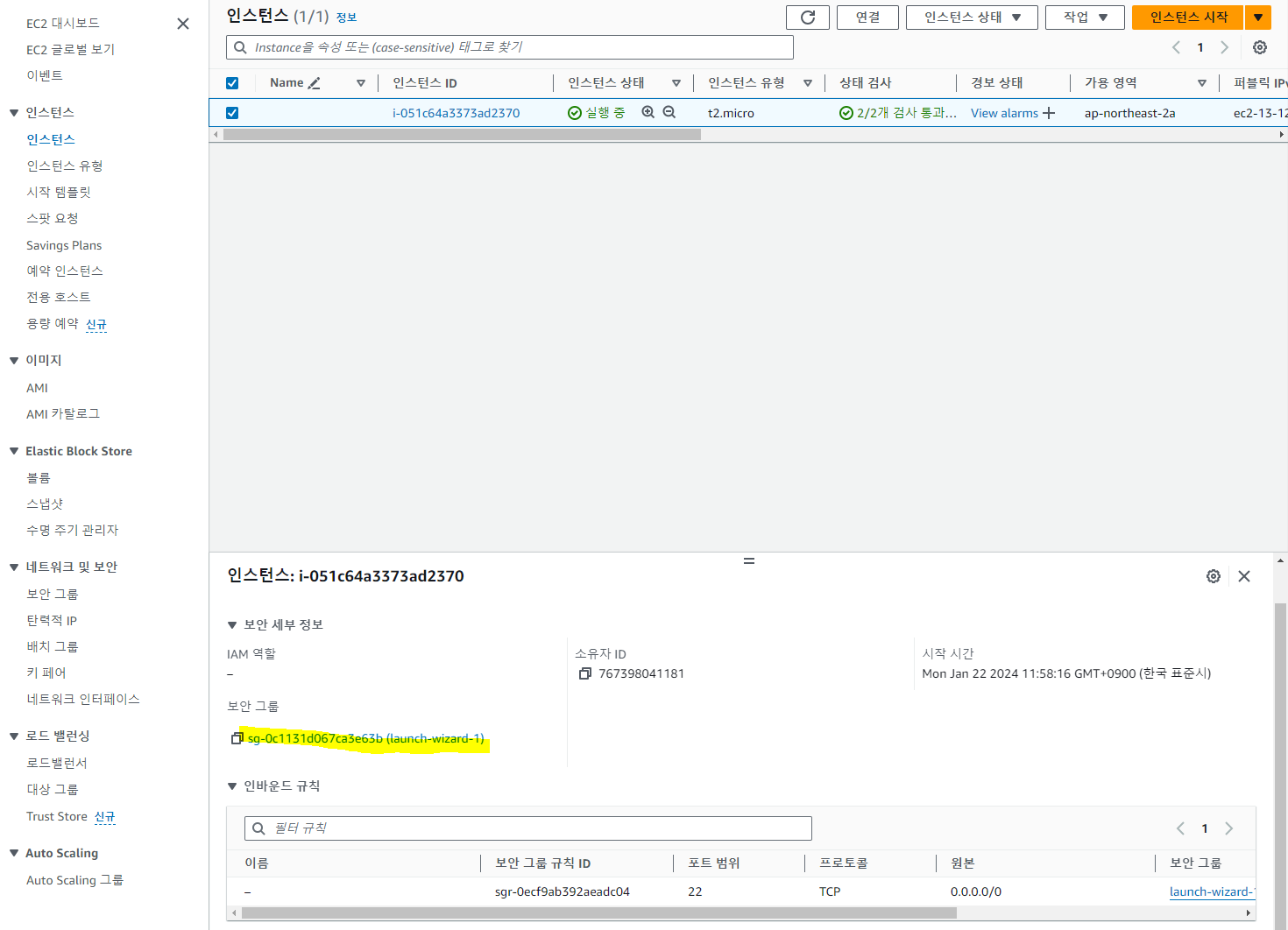 ssh -i /c/Users/cojun/Desktop/AWS_Cloud/cojun2024_mykey.pem ubuntu@퍼블릿 IPv4주소