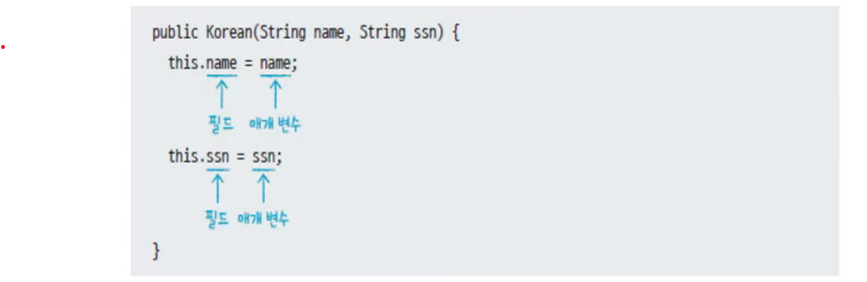 코드의 가독성을 높일라면 초기화시킬 필드 이름과 비슷하거나 동일한 이름을 사용하는 것이 좋음