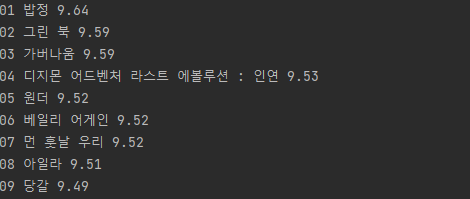 print(rank,title,star)