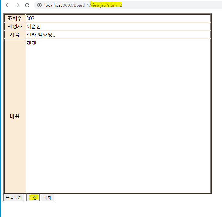 view.jsp에서 수정 버튼 클릭 시 write.jsp로 이동