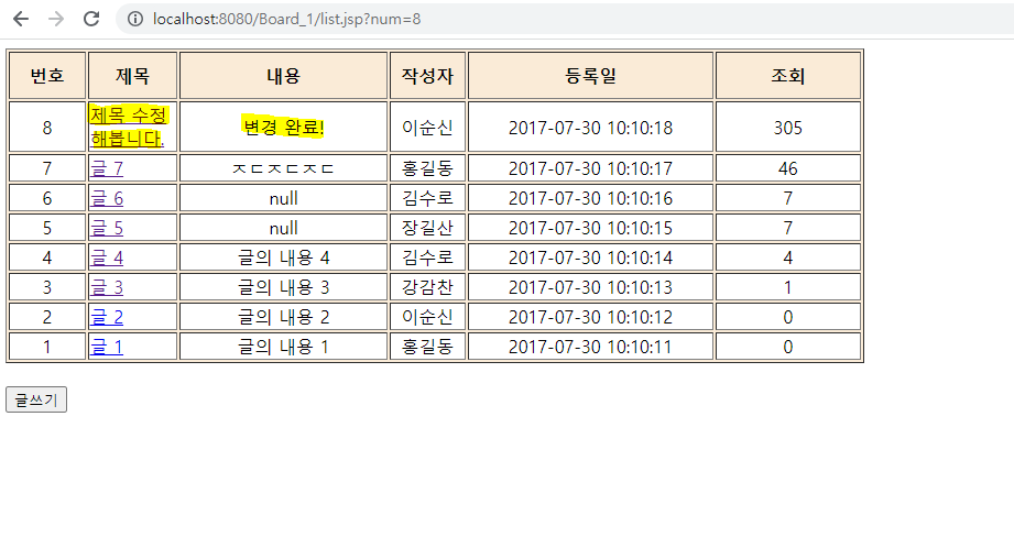 해당 코드 부분 처리 후 db에 업데이트 후 list.jsp로 돌아감