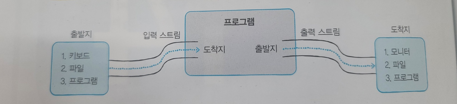 프로그램이 출발지냐 또는 도착지냐에 따라서 사용하는 스트림의 종류가 결정된다.