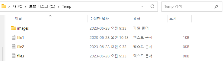 실행 결과에 "파일"이 두 번 나오는 이유는 "파일" 이외에도 "images"라는 이름의 디렉토리도 있기 때문입니다.