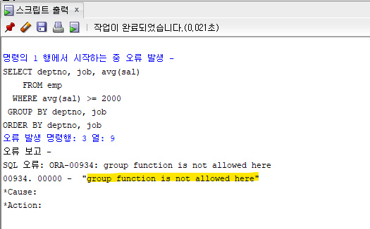 에러 = "그룹 함수는 허가되지 않는다"