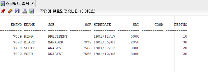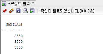 서브쿼리의 SELECT문 결과 값이 밑에 쿼리문 처럼 2850, 3000, 5000이 출력되는데 IN연산자를 사용해 메인쿼리에서는