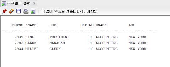 세 값 중 일치하는 값을 가진 행만 출력한다.