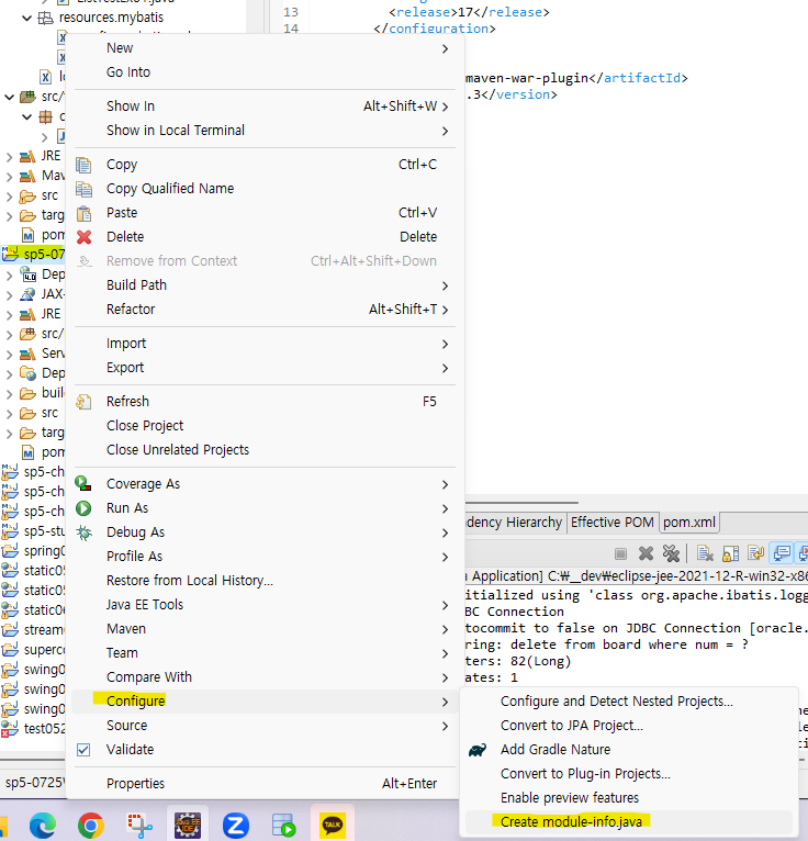 다이나믹웹프로젝트에서는 안해도 되지만 java프로젝트에서는 해야되는 설정 ( 밑에 이미지 참고 )