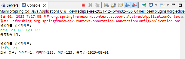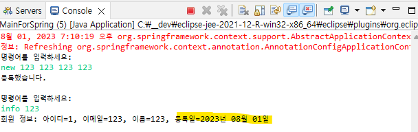 info 출력 시 기본 생성자에서 초기화한 dateTimeFormatter를 사용해서 회원가입 일자 출력