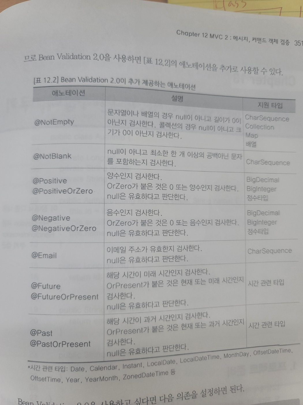 이 애노테이션을 사용하면 Validator 작성 없이 애노테이션만으로 커맨드 객체의 값 검증을 처리할 수 있다.