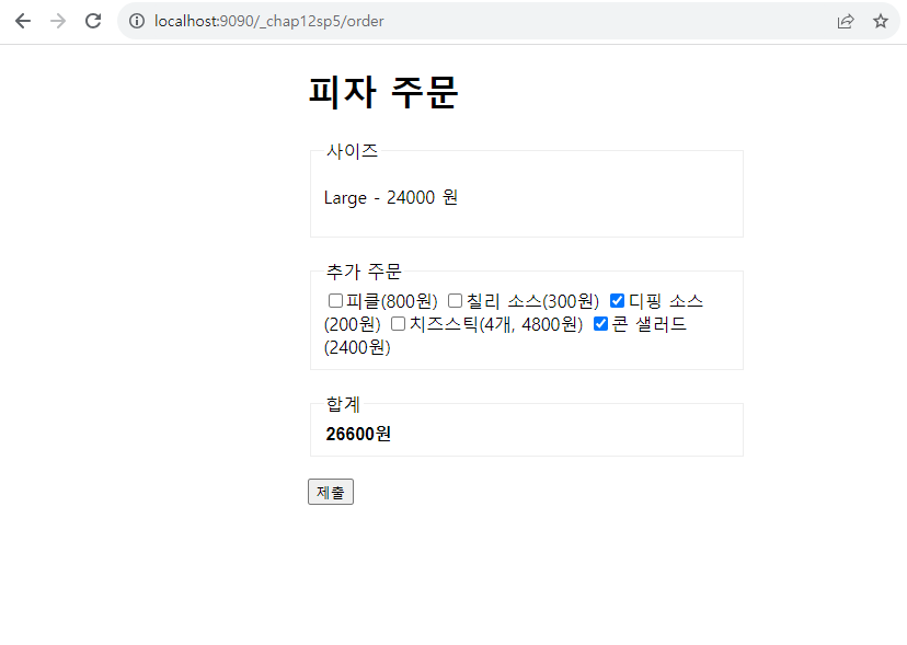 Checkbox => List로 받아서 Pizza 추가 주문건 출력해보기