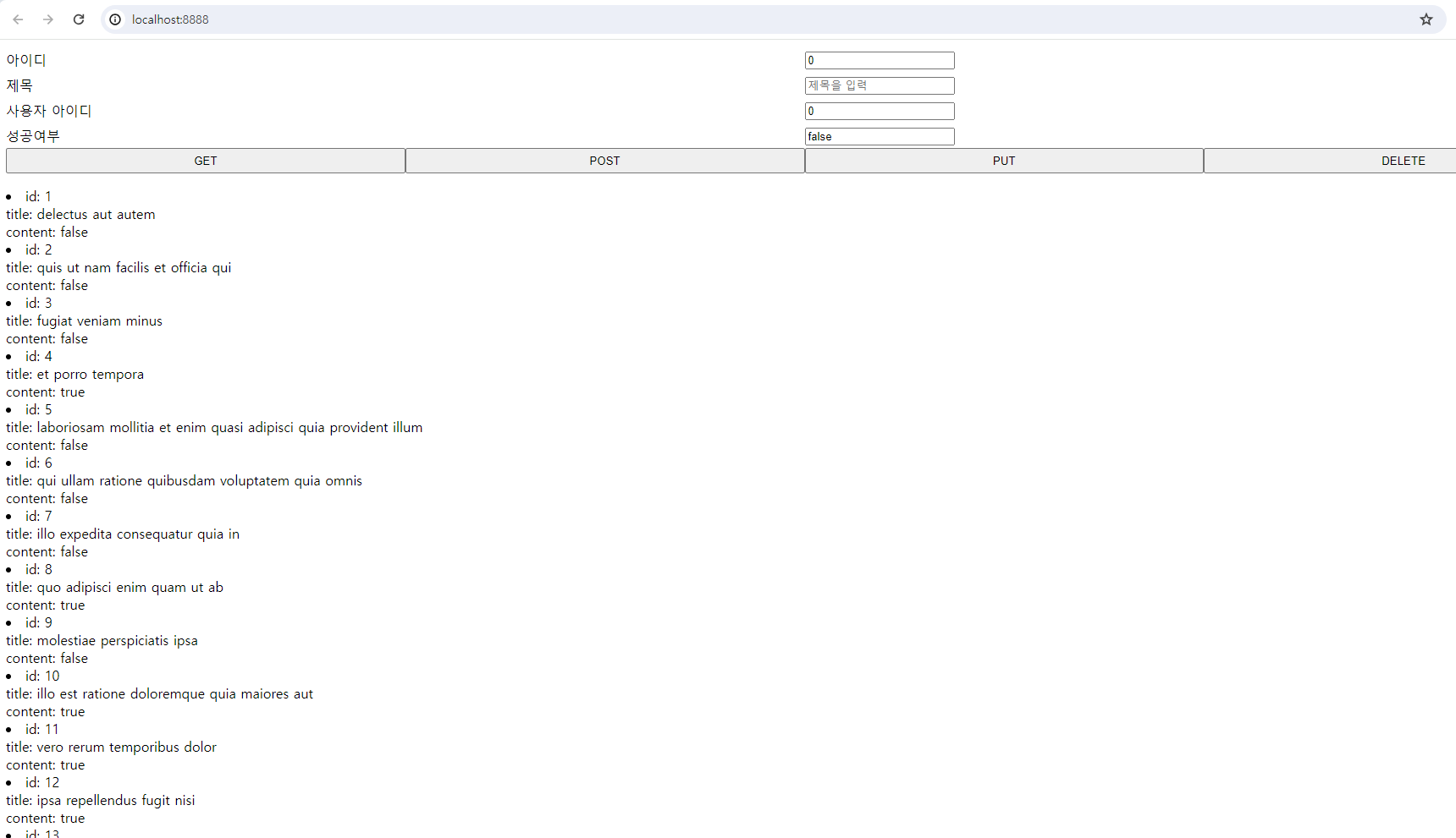 += `<li>id: ${data.id} <br>title: ${data.title} <br> content: ${data.completed}</li>`