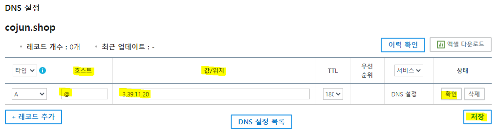 값.위치 : 위에 복사한 퍼블릭 주소 입력