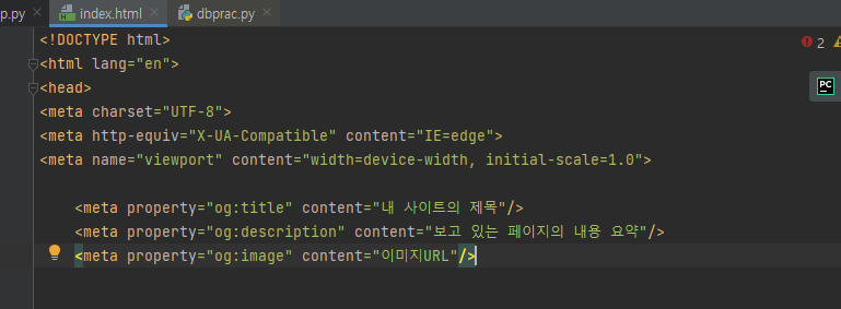 위에 3개 meta 태그 index.html에 넣어주기