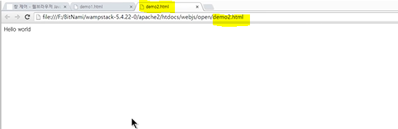 아래 예제는 보안상의 이유로 실제 서버에서만 동작하고, 같은 도메인의 창에 대해서만 작동 함