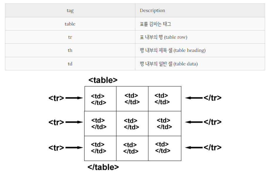 과거에는 테이블 태그를 사용하여 레이아웃을 구성하기도 하였으나