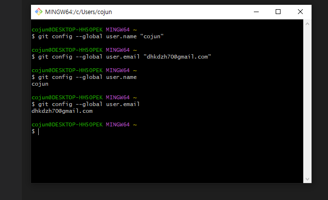 Git 전역으로 사용자 이름과 이메일 주소를 설정