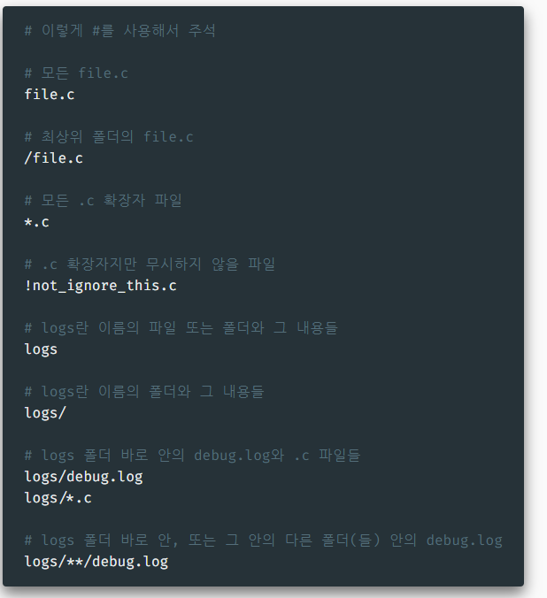 https://git-scm.com/docs/gitignore 해당 사이트에서 참고