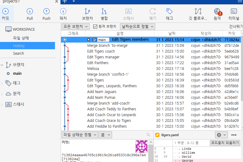Edit Tigers manager 커밋 메세지 작성 후 커밋