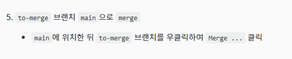 이동 시킬 브랜치 우클릭 현재 브랜치로 병합 클릭