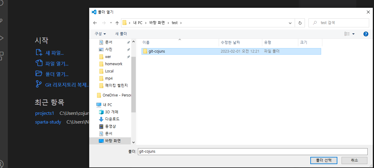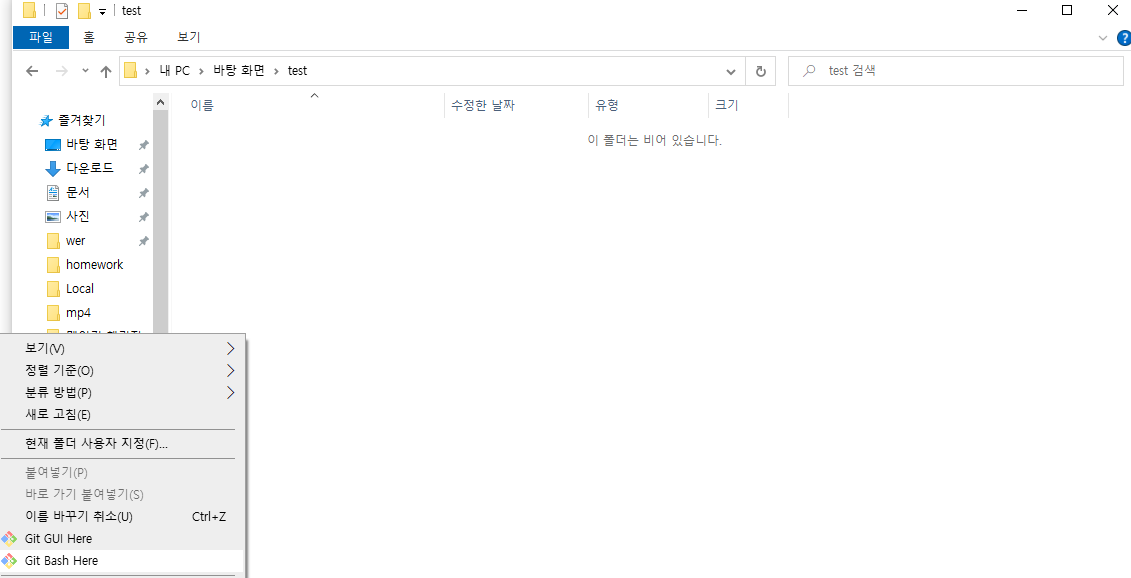 다운받을 폴더 우클릭 Git Bash Here 선택
