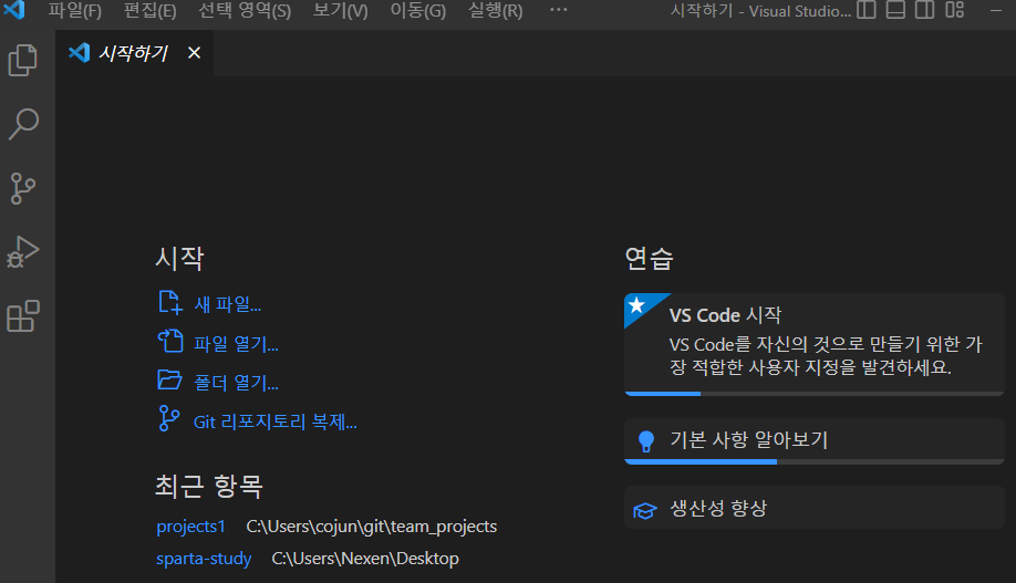 git clone (원격 저장소 주소) 복사했던 주소 엔터