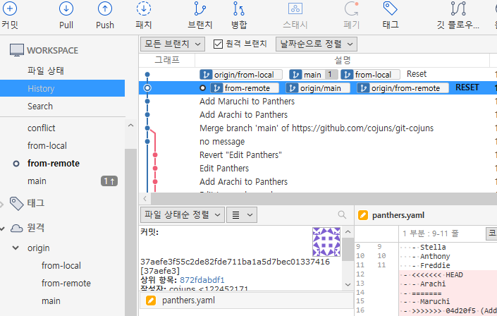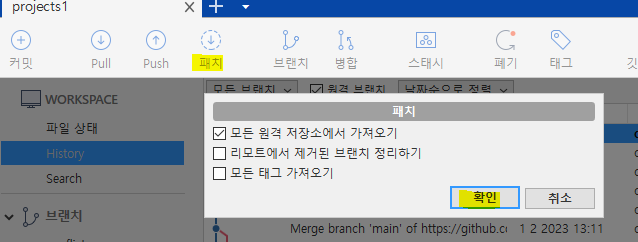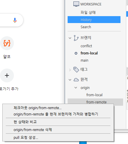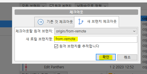 origin from-remote 우클릭 -> 체크아웃 클릭