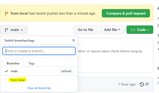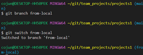 로컬에서 브랜치 만들어 원격에 push 해보기