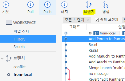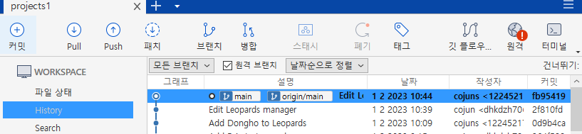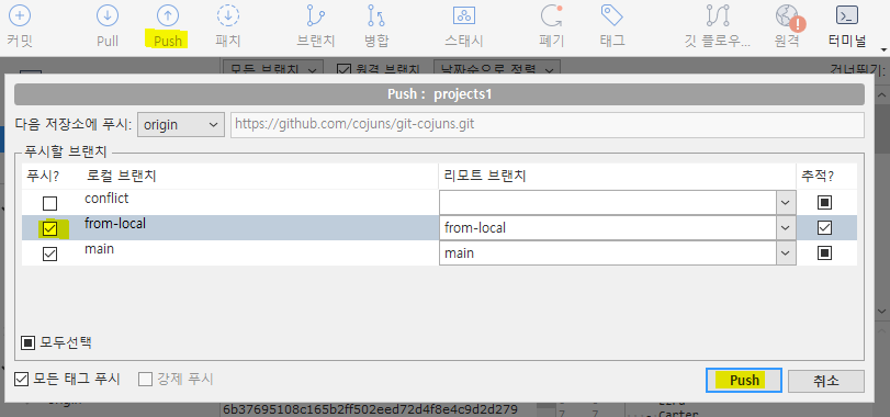 로컬 저장소의 커밋 내역들 원격으로 push(업로드)