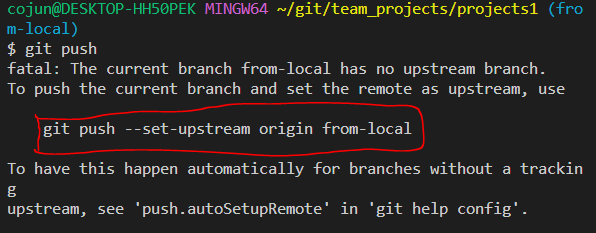 git push 명령어를 치면 대상을 명시하라는 메시지 나타남