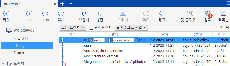 | 변경사항들 버전 관리 (commit, reset, revert, SourceTree로 진행 해보기 ) (0) | 2023.01.30 |