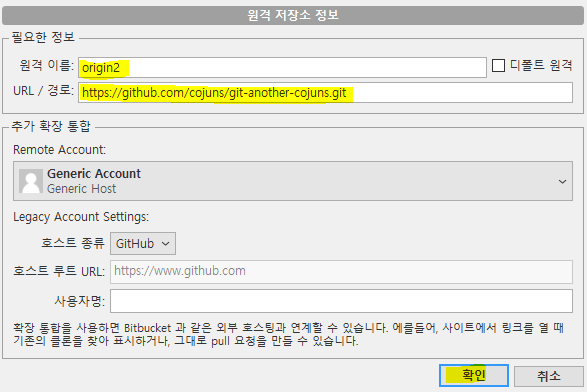 url / 경로 : GitHub에서 복사했던 url 주소 입력