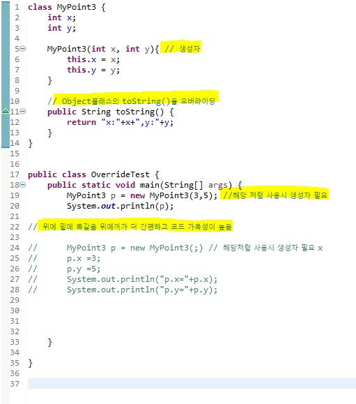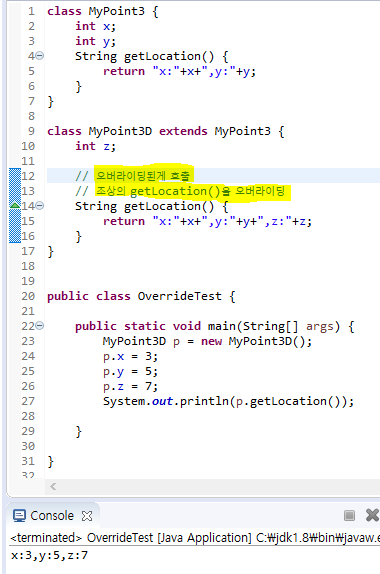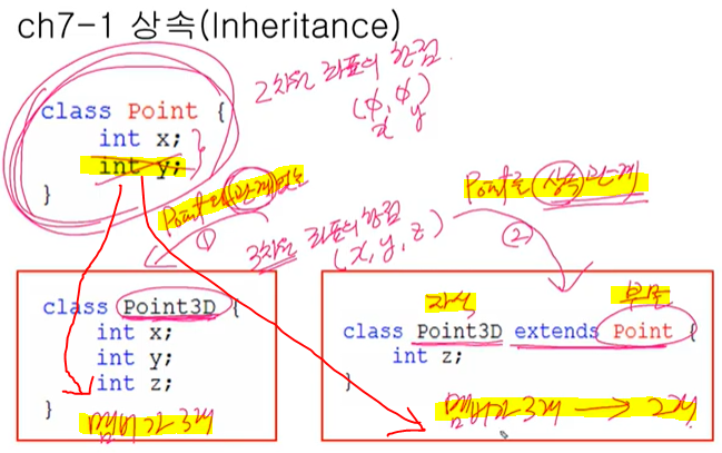 Point3D(int x, int y, int z) { this.x = x;, this.y = y;, this.z = z; } → Point3D(int x, int y, int z) { super (x.y); this.z; } 변경