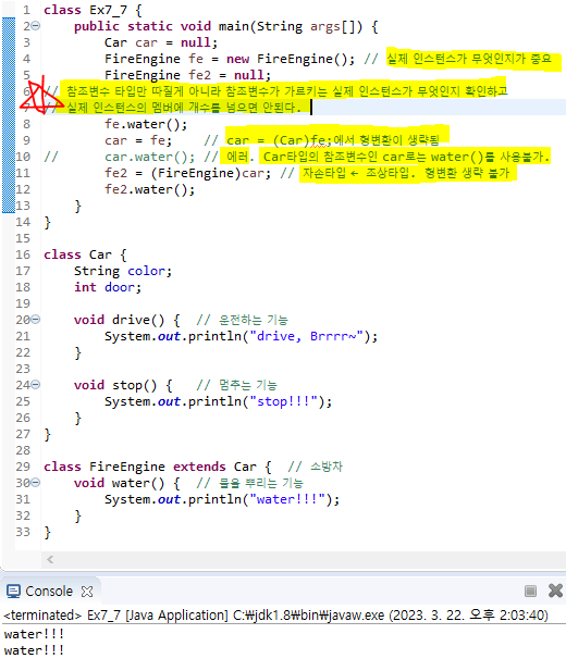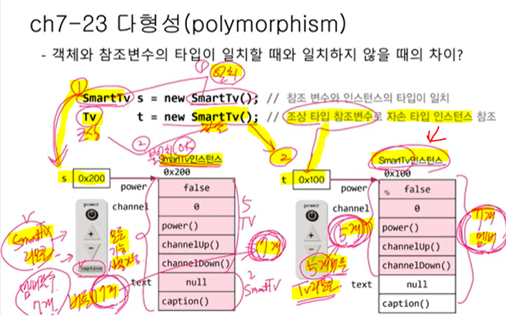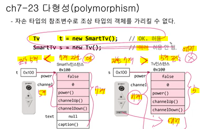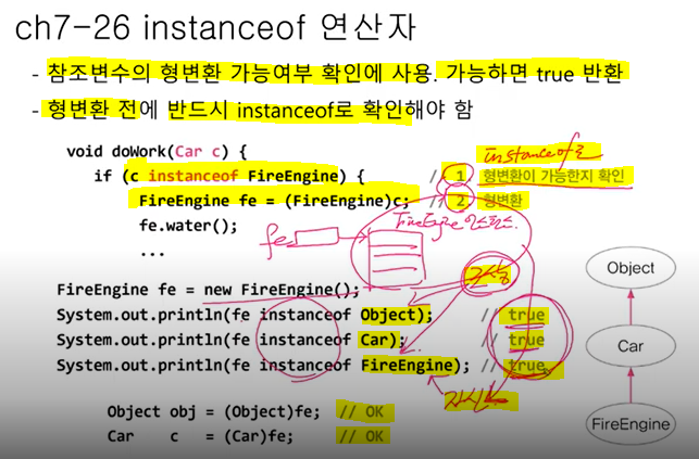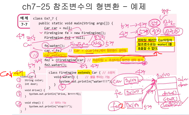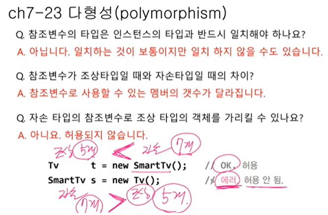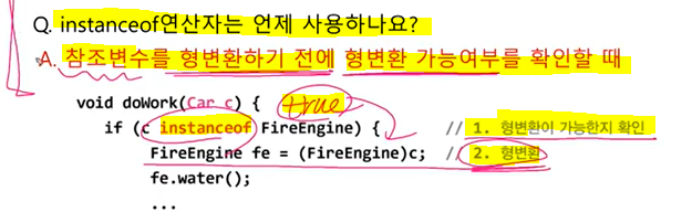 참조변수 타입만 따질게 아니라 참조변수가 가르키는 실제 인스턴스멤버들이 무엇인지 확인하고