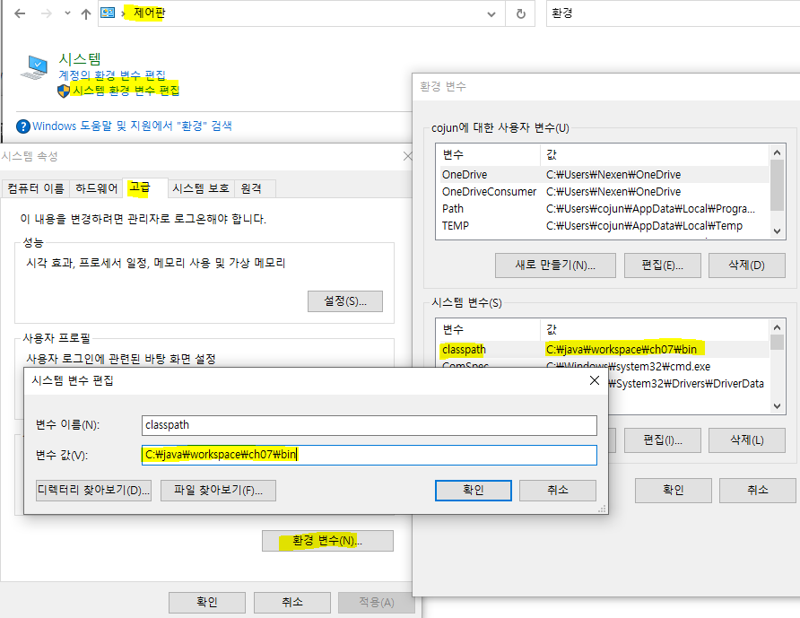 환경변수 클래스패스값 확인 방법