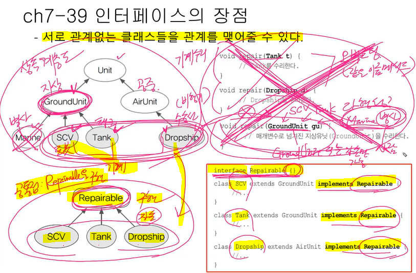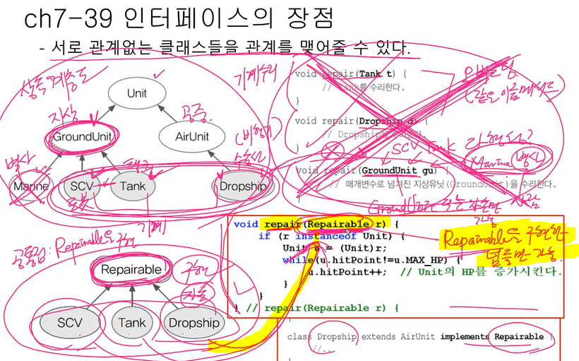 메서드 호출 ( 매개변수Repairable ) Repairable을 구현한 클래스의 객체만 가능