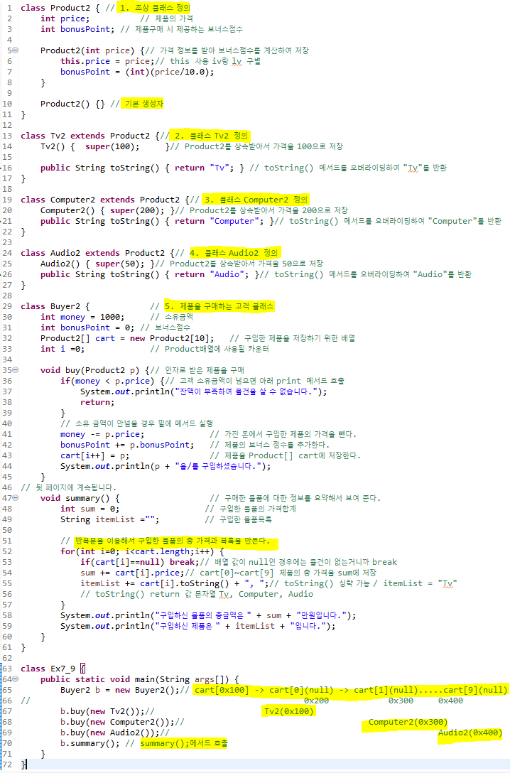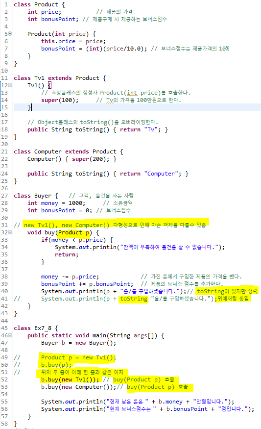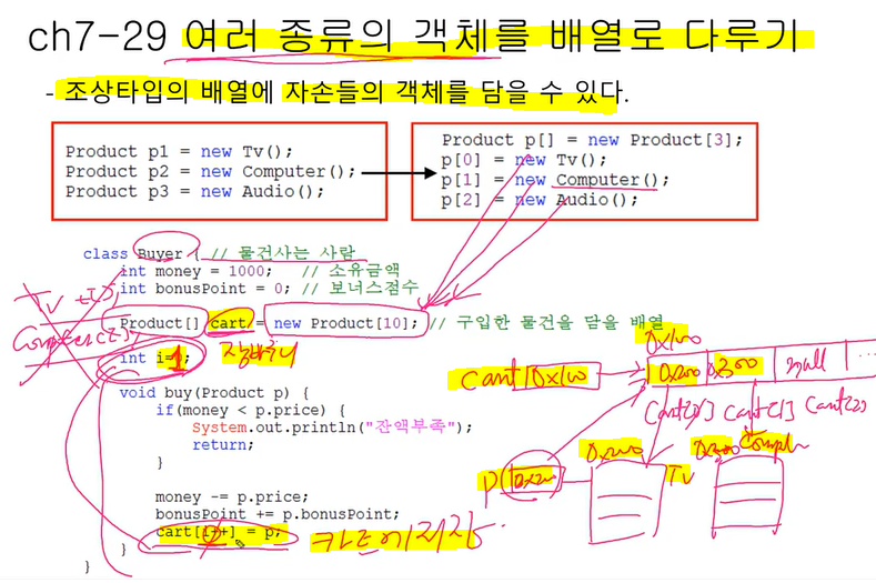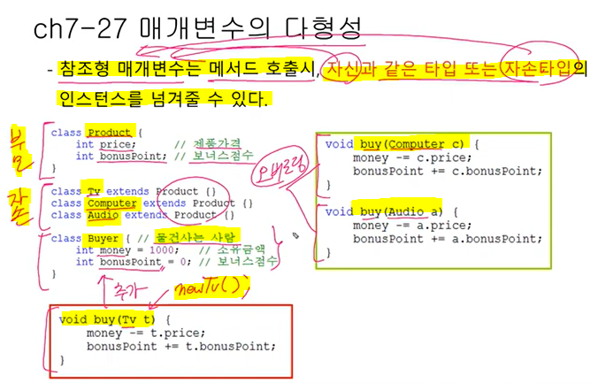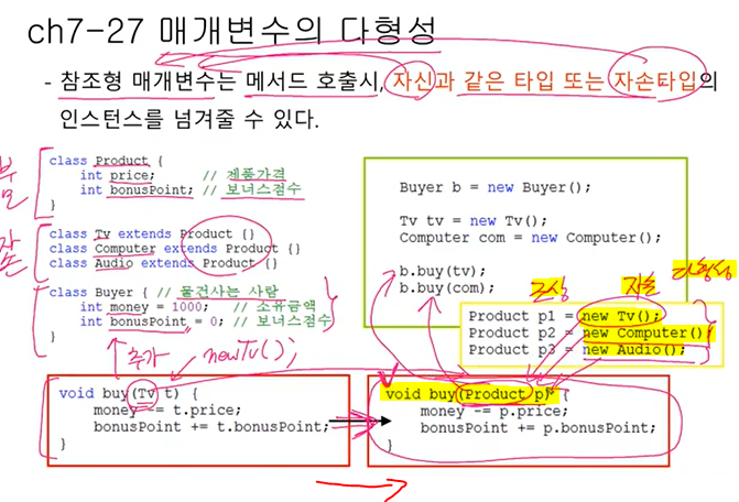 void buy(Tv t) -> void buy(Product p) 자손 클래스를 조상 클래스로 변경