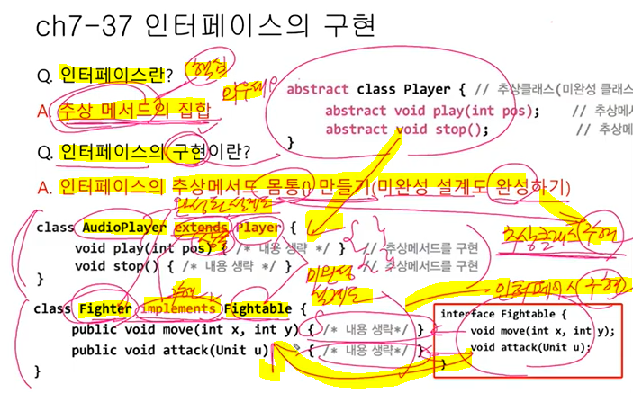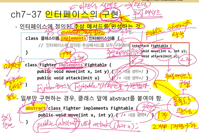 차이점은 extends 키워드말고 implements 사용