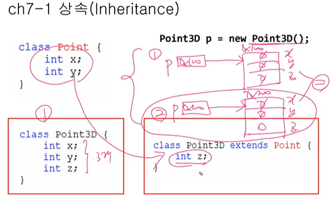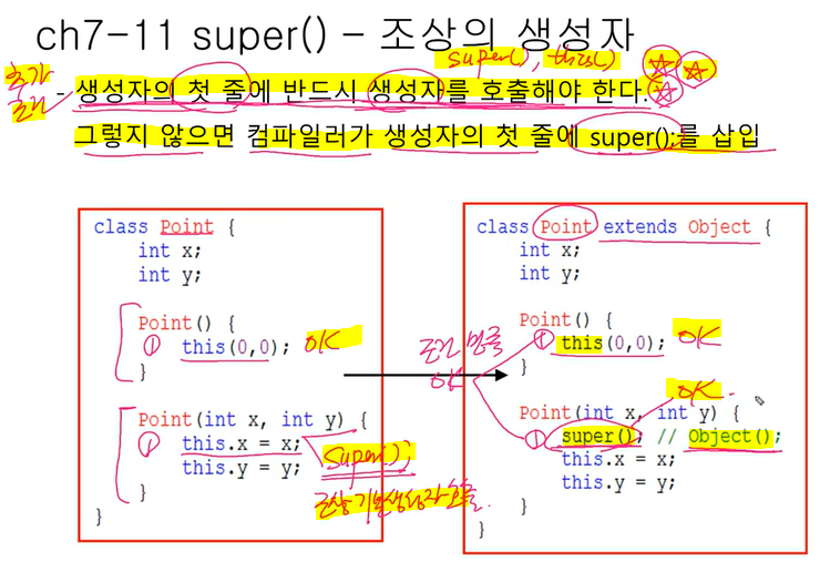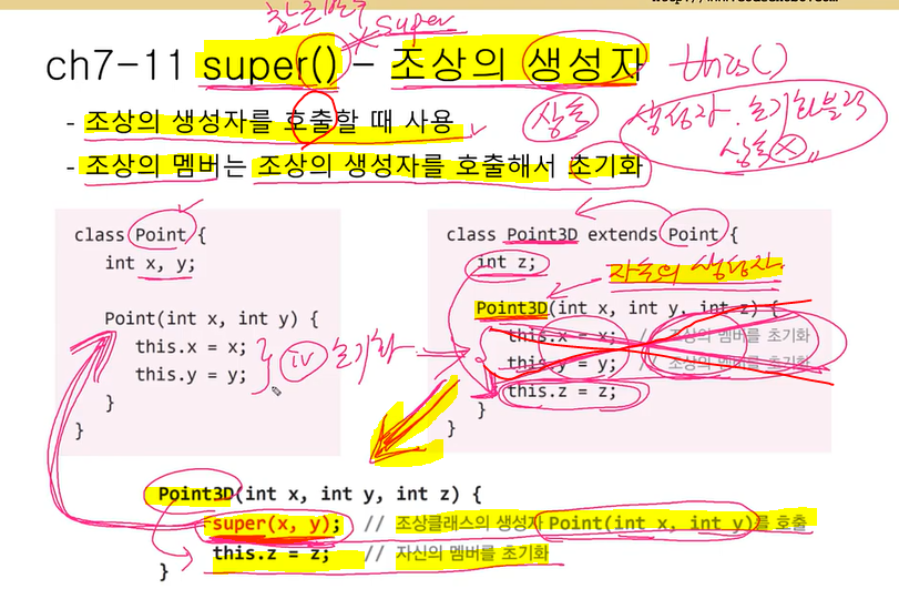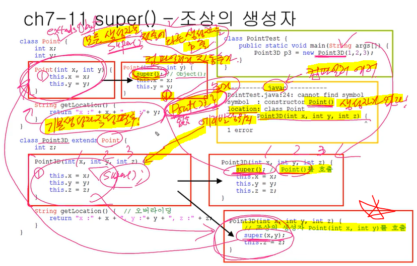 2. 자식 클래스( Point3D )에서 super(x,y); 조상의 생성자 Point(int x, int, y)를 호출