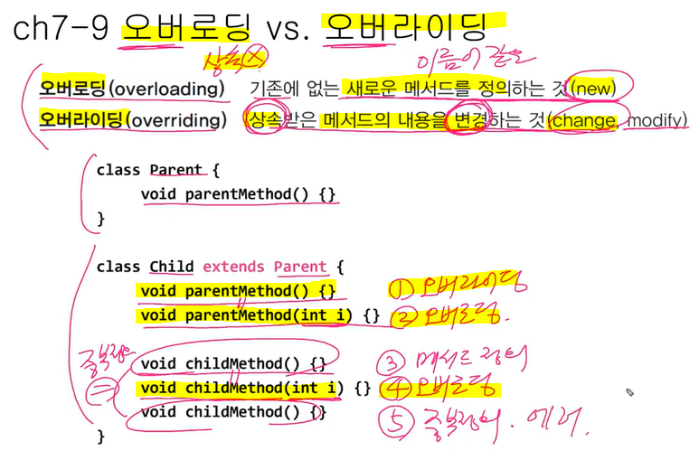 오버로딩 vs 오버라이딩 ( 실질적으로는 상관 없음 )