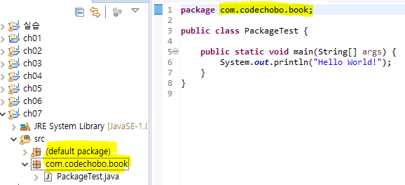 com.codechobo.book : 해당 패키지 선언된 파일들 해당 위치에 속하게 됨