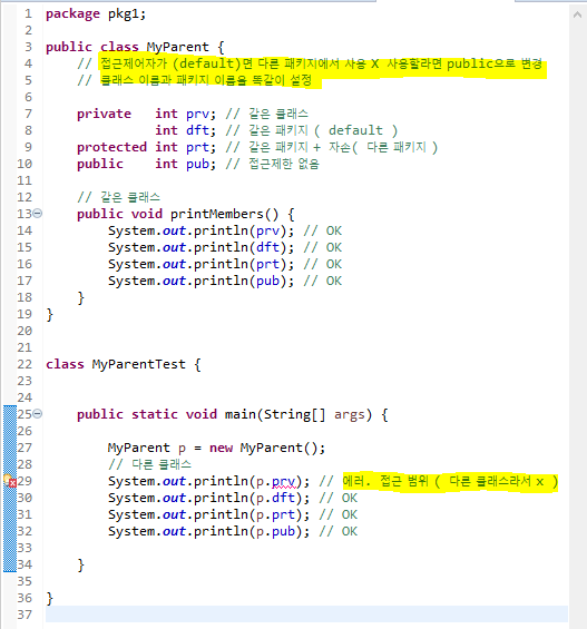접근제어자는 범위가 좁으면 좁을수록 좋음 필요할때 넓이면 됨