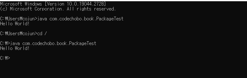 클래스 패스에 패키지의 루트 입력전에는 패키지의 루트로 이동 후 파일 실행 가능