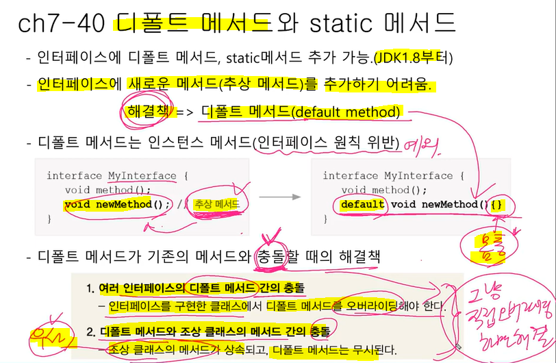 인터페이스는 추상메서드의 집합이기 때문에 { 내용 } 이 없으므로 충돌문제 없음 다중상속 가능