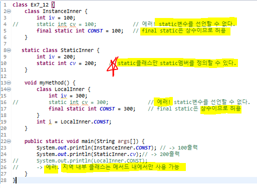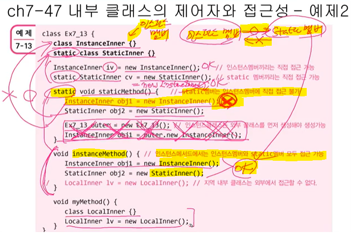 ★static멤버가 필요하면 static내부클래스이어야 한다.★
