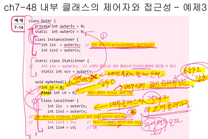 외부 클래스의 지역변수는 final이 붙은 변수(상수)만 접근 가능하다.(JDK1.8부터는 final 생략가능)