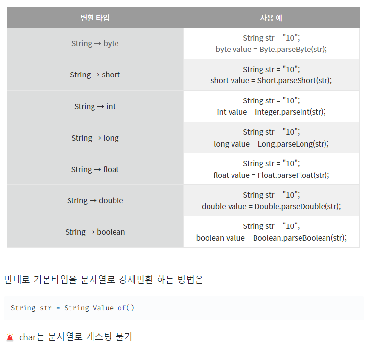 byte byteVar = ( byte ) intVal // 강제 타입 변환