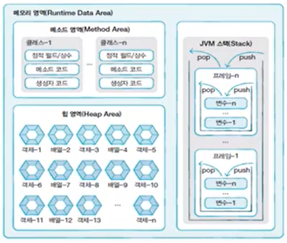 객체와 배열이 생성되는 영역, 생성된 객체와 배열은 JVM 스택 영역의 변수나 다른 객체의