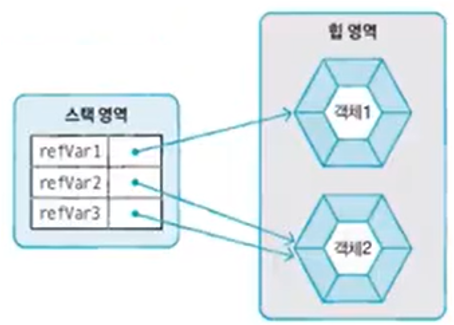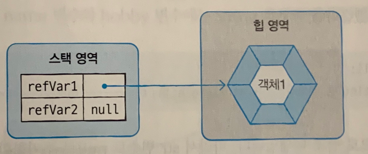 참조 타입 변수는 힙 영역의 객체를 참조하지 않는다는 뜻으로 null 값을 가질 수 있음