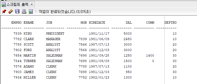 집합 연산자 UNION ALL ( 중복된 결과값도 출력 )
