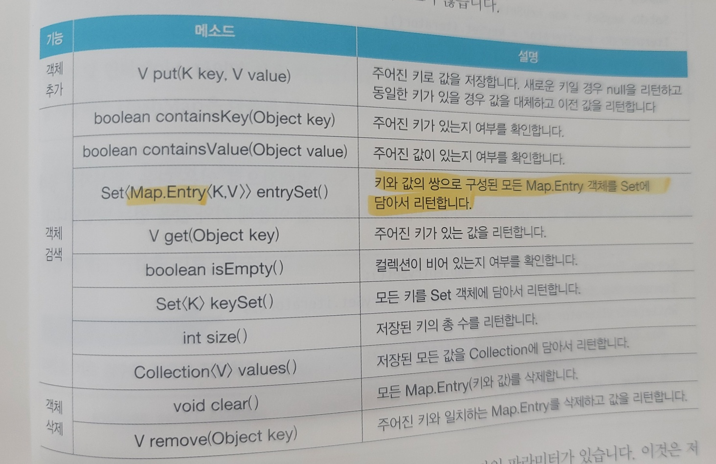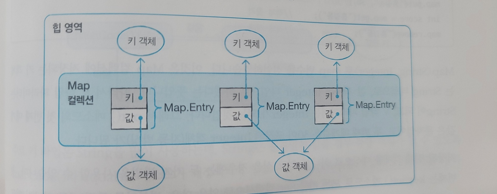 Map 컬렉션은 키(key)와 값(Value)으로 구성된 Map.Entry 객체를 저장하는 구조를 가지고 있다.
